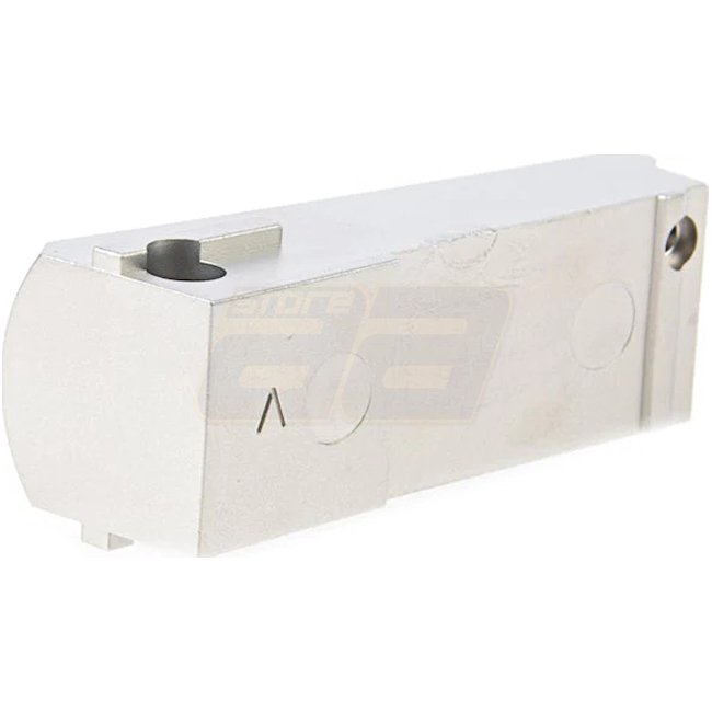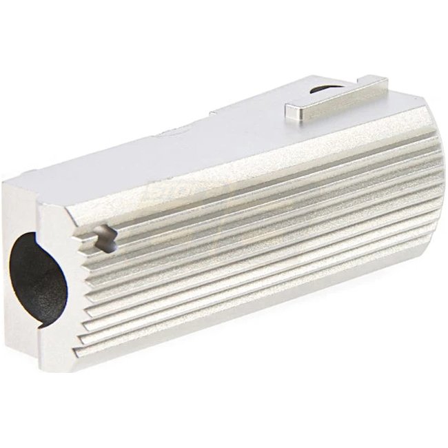 Upgrade your Marui V10 gas blowback pistol with this high-quality stainless steel spring housing in a sleek silver finish from Guarder.
