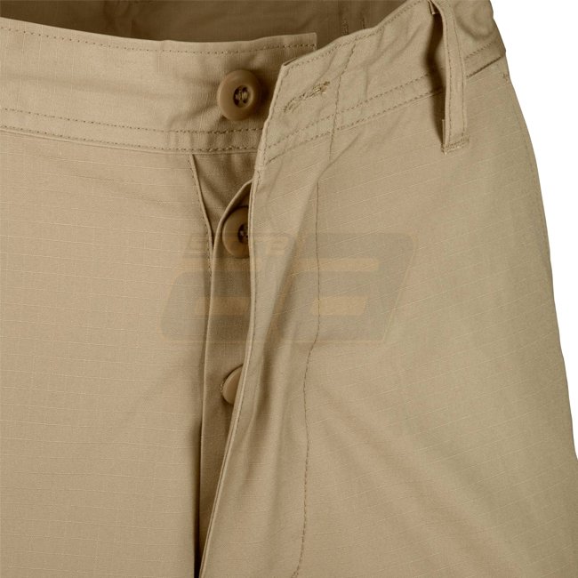 The Helikon-Tex BDU Shorts in Khaki, XS size, are perfect for hot weather. Made of 100% Cotton, they feature an adjustable waist, reinforced seat, front and back pockets, and thigh cargo pockets with buttoned flaps. Weighing only 466g, these shorts are co