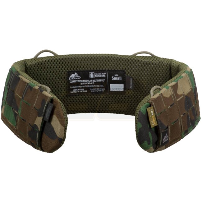 Helikon-Tex Competition Modular Belt Sleeve - US Woodland - S is a 45 mm wide belt sleeve designed for use with COMPETITION Nautic Shooting Belt or any other gun belt up to 45 mm wide. Padded with durable EVA foam, featuring laser-cut modular platforms co