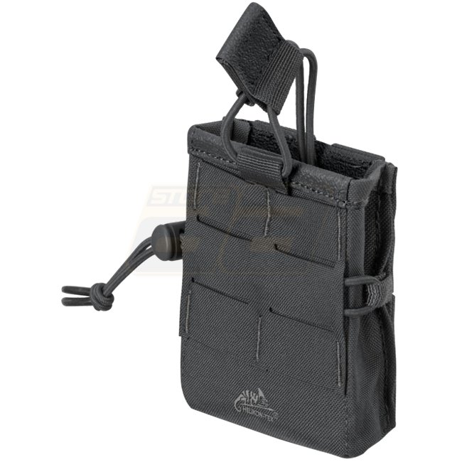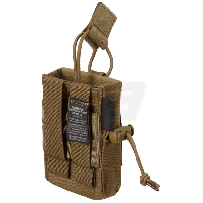COMPETITION Rapid Carbine Pouch® is one of the main parts of the COMPETITION set. The pouch was designed to fit standard carbine/rifle magazine, including AR15 and AK47 magazines. The pouch is partially stiffened to help with re-holstering or reindexing the magazines. Front modular system made of laser cut laminate allows to stack the pouches. The pouch is mountable via MOLLE/PALS system or can be mounted directly on the belt up to 50 mm wide. Elastic cord that goes near the center of the pouch prevents the magazines from falling out even during rapid movements.