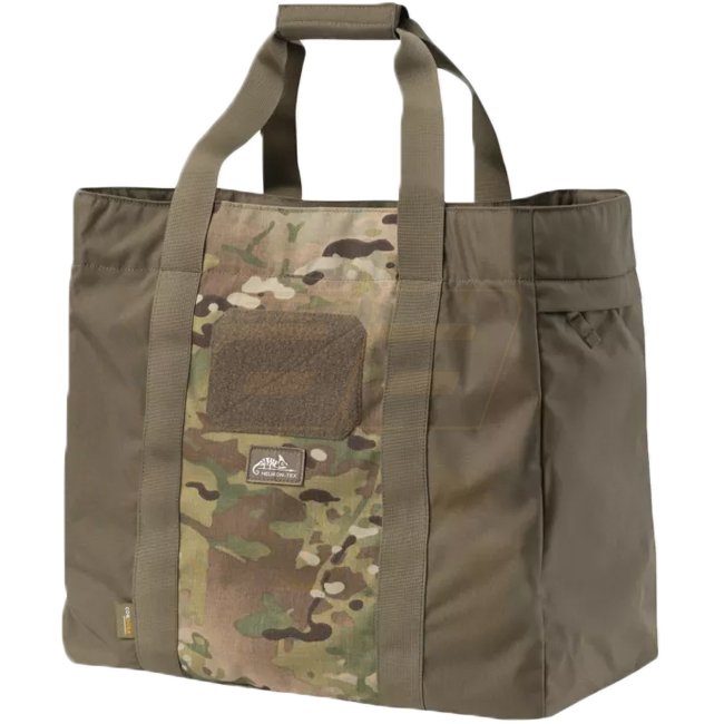 Helikon-Tex Field Tote Bag - Multicam: Durable and versatile 55-liter tactical carryall made from 500D Cordura® at 235g/m². Features compression straps, carry handles, detachable shoulder strap, organizer with velour-lined pocket, wallet on carabiner, and