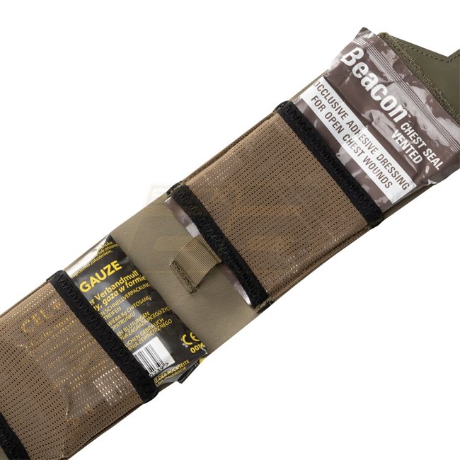The main idea for this product was to depart from the typical form of a first aid kit in favor of a more low-profile look. The absence of reflective elements, bright colors, or camouflage allows you to carry first aid measures without attention, e.g. in an environment where firearms appear.