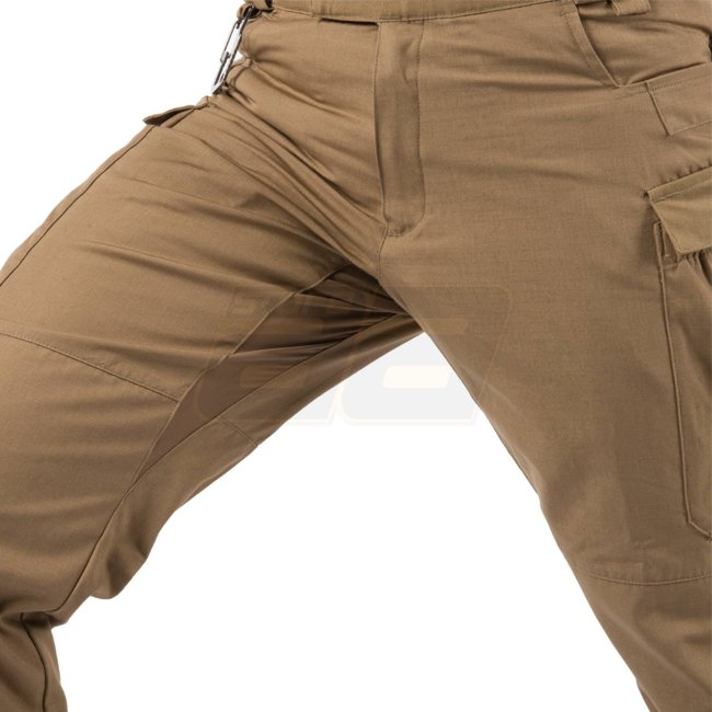 The pants have a loose, profiled cut. The belt is fastened with hook & loop tape that enables additional fine adjustment. Wide beltloops support belts up to 45mm wide, even with holster or magazine pouches installed. Gussets made of elastic VersaStretch fabric are placed on the back and in the crotch area for additional freedom of movement. Classic hip pockets have reinforcements on the edges to avoid being damaged by knife clips. Additional back pockets with reinforced edges will fit larger items like magazines. On the thighs large, spacious, buttoned cargo pockets can be found. On the lower legs smaller closed pockets with hook & loop closure will fit essentials like field dressings or a tourniquet.