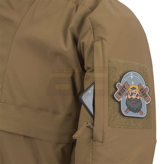 Stay protected from the elements with the Helikon-Tex Mistral Anorak Jacket. Made of StormStretch fabric with loop panel for personalization, this black jacket features a large kangaroo pocket, adjustable hood, bicep pockets, elbow reinforcements, ventila