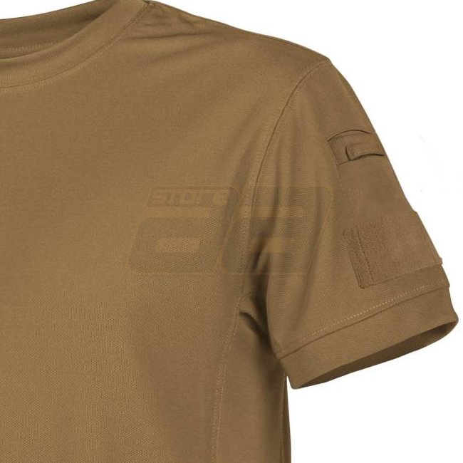 Helikon-Tex Tactical T-Shirt Topcool Lite in Coyote color, size XL. Light, breathable fabric wicks moisture for quick drying. Upper sleeve pockets with loop ID panels for personalization.