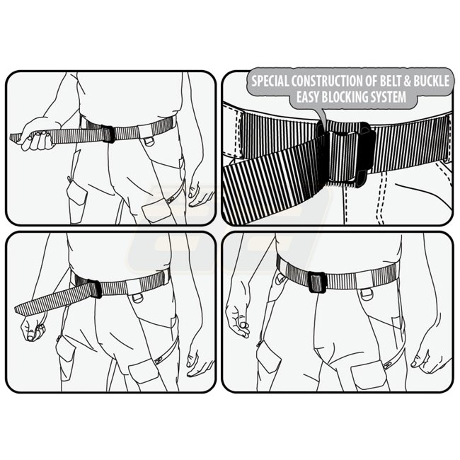 Functional and durable urban tactical belt in classic black color, made from high-quality polyester material. Features a 4.5 cm width and comes in size 2XL (Length: 140cm). Complete with a sturdy plastic buckle for added security.