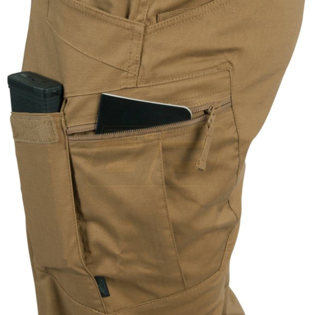 "Some products have a kind of cult following. For each manufacturer facing a crowd of satisfied clients is not only enormous joy, but also confirmation that the product is right. What makes Urban Tactical Pants® so special? The cut and pockets layout employed in these pants maintain civilian enough outlook to retain anonymity, while retaining full functionality of combat pants, capable of supporting tactical essentials – at the same time not colliding with human anatomy. Elastic Velcro-closed belt allows easy adjustment. Wide belt loops allow as wide as 50 mm belt, including all HTX tactical belts: EDC, UTL® or Cobras®. Plus the cut employed, classical for blue jeans, reduced the tendency to ride down while in use. By judicious layout of the pockets, equipment can be placed close to the center mass, around the hips and waist. Front and rear pockets edges are reinforced to withstand constant movement of light or knife clips. Two Velcro-closed front pockets are big enough to carry a smartphone – or even an AR/AK rifle magazine. Thigh zippered pockets look flat – but its design allows pouches or wallets to be carried with ease. Bespoke internal pockets await being filled with Low Profile Protective Pads®. Three types of fabric plus wide variety of colors allows to match trousers to the rest of wardrobe or working conditions. Belt not included"