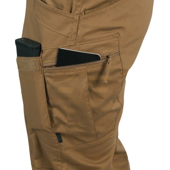 Urban Tactical Pants with cult following, ideal for tactical use and blending in with civilian environment. Velcro-closed elastic belt for easy adjustment, wide belt loops, reinforced pockets, and low profile protective pads compatibility. Thigh zippered