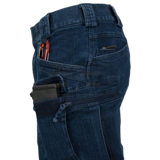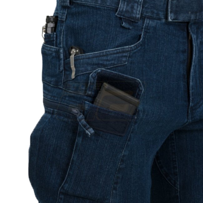 Helikon-Tex UTS Urban Tactical Shorts 8.5 Denim Stretch - Marine Blue - M: Short version of bestseller UTP pants. Elastic waistband, wide belt loops, reinforced pockets, YKK zippers. Carry tactical equipment with ease.