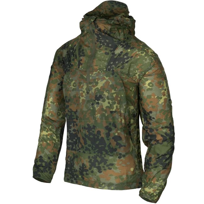 Helikon-Tex Windrunner Windshirt - Flecktarn - L: Ideal windbreaker for outdoor activities such as jogging, featuring lightweight and windproof materials, mesh ventilation slats, and multiple pockets for easy organization.