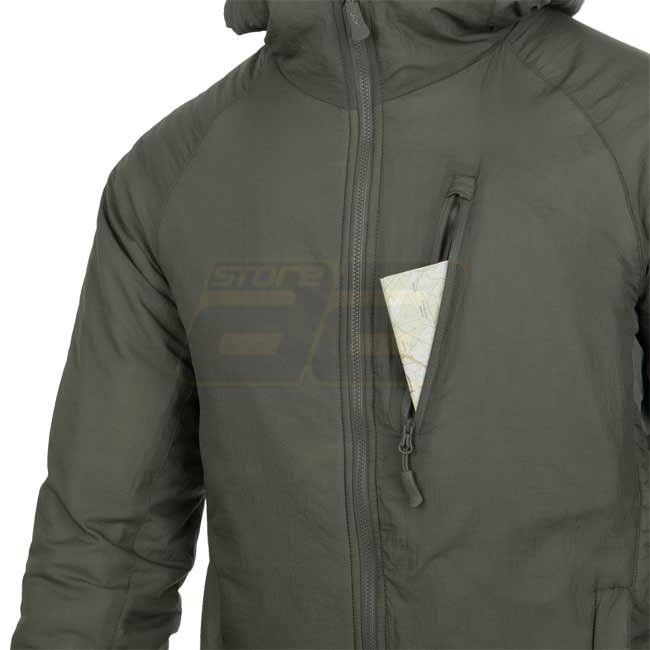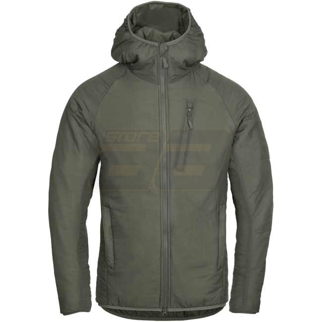 Stay warm and cozy with the Helikon-Tex Wolfhound Climashield Hoodie. Lightweight, packable, and insulated with Climashield Apex padding for ultimate warmth. Features zippered pockets, adjustable hood, and YKK zippers. Perfect for outdoor adventures.