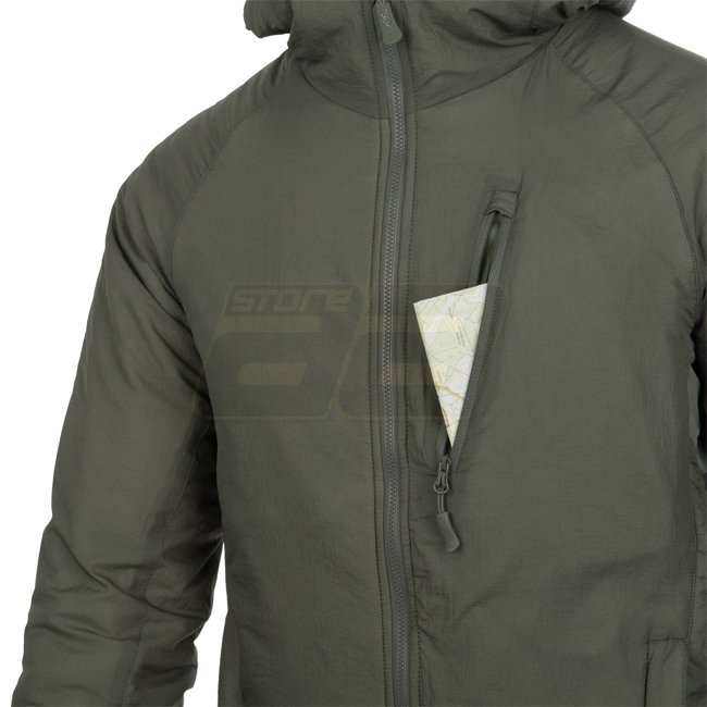 Stay warm and dry with Helikon-Tex Wolfhound Climashield Hoodie - Coyote - M. Lightweight, packable hoodie with WindPack nylon exterior, Climashield Apex padding, multiple zippered pockets, loop panel for personalization, adjustable hood, and YKK zippers.