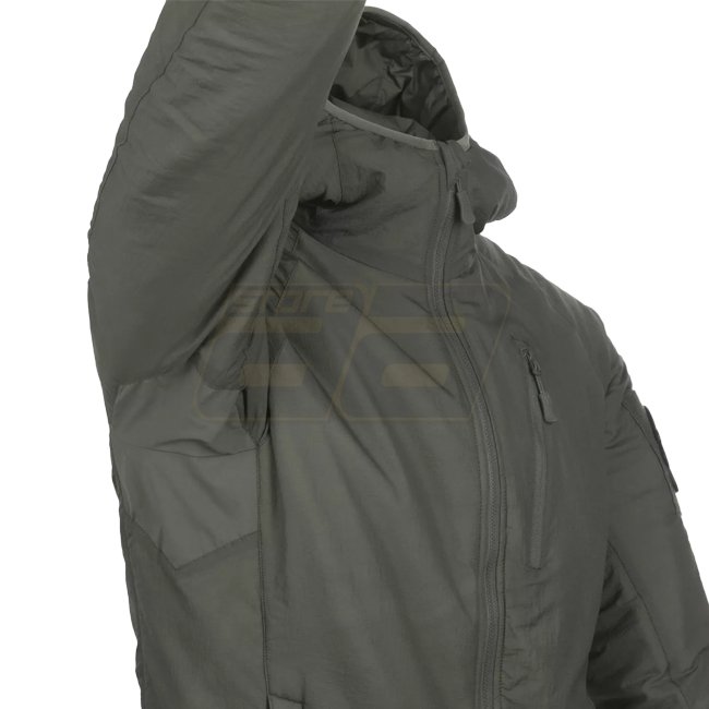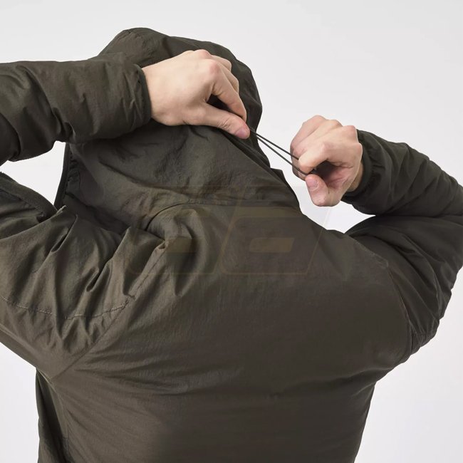 The Helikon-Tex Wolfhound Hoodie Jacket is an excellent choice for those actively spending time outdoors, regardless of weather conditions. Lightweight and functional, it is designed to protect from cold, wind, and light rain. Filled with synthetic insulation, Climashield™ Apex® at a weight of 67 g/m², it offers excellent thermal insulation and warmth, even when wet. The jacket features four pockets secured with sturdy YKK® zippers: three on the outside and one internal, ensuring easy access to stored items. Thanks to the use of flexible VersaStretch® inserts under the arms, the jacket does not restrict movement and remains comfortable even during intense effort. The adjustable hood with an additional, soft visor further protects the head from adverse weather conditions. The outer nylon fabric, WindPack®, is coated with Teflon®, enhancing its moisture resistance. Additional protection against drafts is provided by elastic bindings at the bottom of the jacket, at the cuffs, and along the hood's edge.