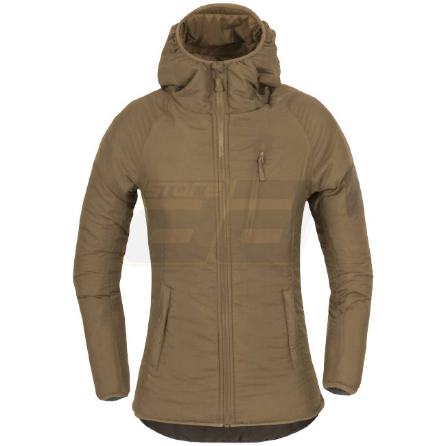 Stay warm and dry with the Helikon-Tex Women's Wolfhound Hoodie Jacket. Featuring a protective DWR layer, Climashield Apex insulation, and wind-resistant nylon fabric, this jacket offers comfort and functionality in one. With pockets for storage and an ad