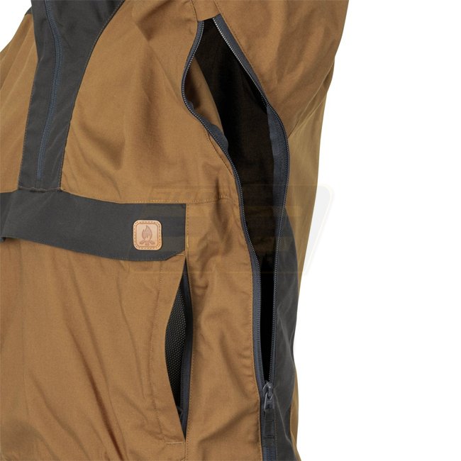 Stay warm and dry in the Helikon-Tex Woodsman Anorak Jacket. Featuring DuraCanvas and StormStretch fabrics, kangaroo pocket, adjustable hood and cuffs, and ventilation zippers. 55% Polyester / 23% Cotton / 19% Nylon / 3% Elastane. 792g.