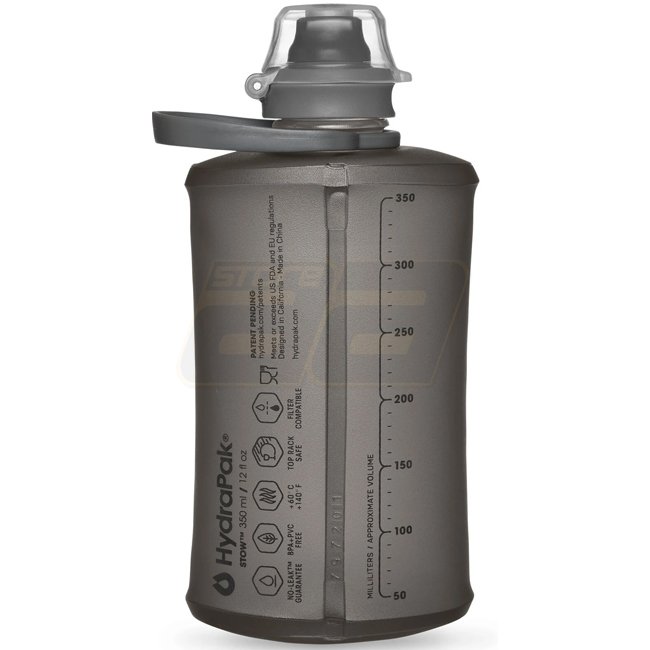 The HydraPak Stow is a compact and lightweight water bottle for outdoor enthusiasts. It is made from flexible, durable materials and is easy to fold and store when empty. It has a wide opening for easy filling and cleaning, as well as an integrated carry handle for transport. The HydraPak Stow is ideal for hiking, cycling or traveling and is compatible with the HydraPak 28mm Filter Kit.