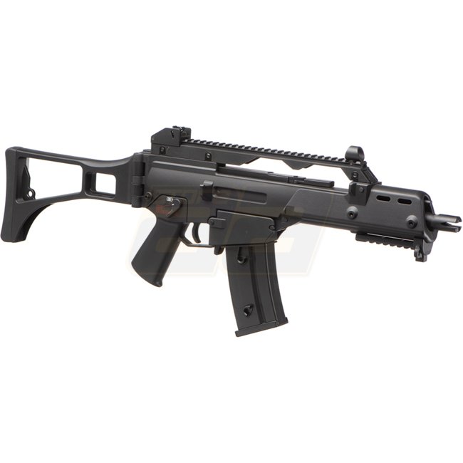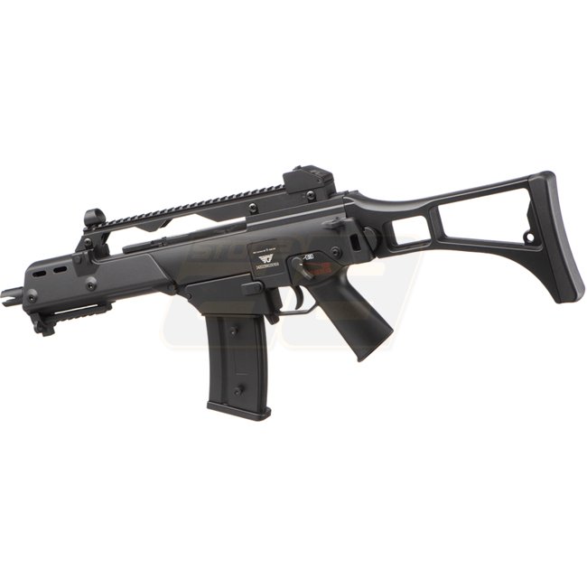 Jing Gong JG36C S-AEG - Black is specially made for the German market, approved by the Beschussamt. Semi-automatic shooting mode with a durable polymer/metal build. Includes gearbox version 3, 470 round magazine, 330-350 FPS velocity, and adjustable hop-u