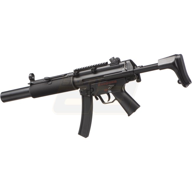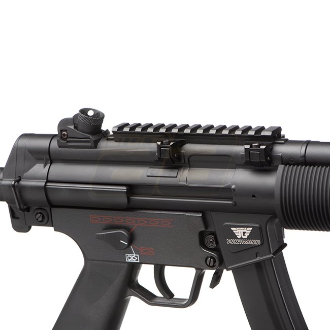 Jing Gong PM5 SD6 Full Metal AEG in Black, with Metal Gearbox, Long Type Motor, and Adjustable Hop Up. Semi Auto & Full Auto shooting modes, shooting range of 48.02-50.76m. Includes 200(6mm) magazine and Small Type Tamiya plug battery.