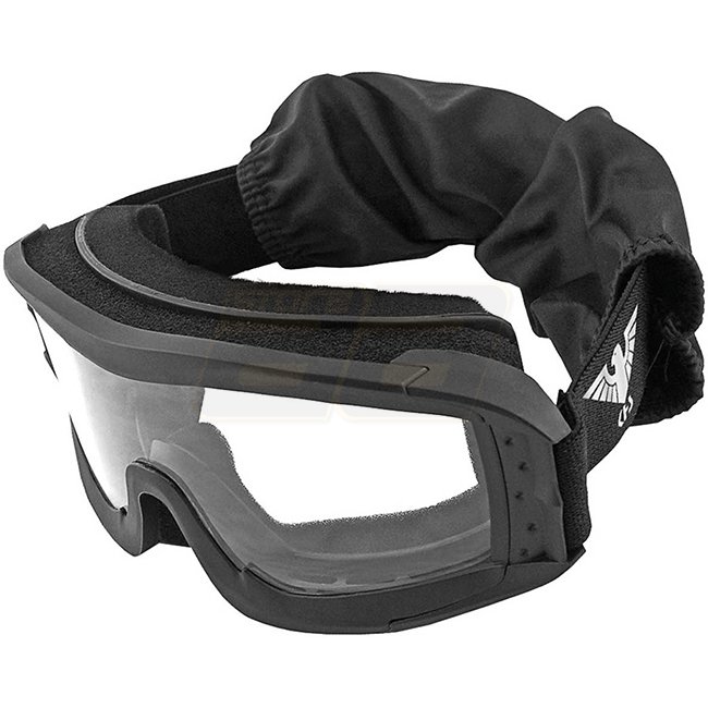 Military Tactical Glasses with Clear Black lenses. Shatter-proof quality for distortion-free vision. Anti-fog coating, UV 400 protection, and filter category 0. Compliant with various military standards. Polycarbonate lenses and Synthetic frame material.