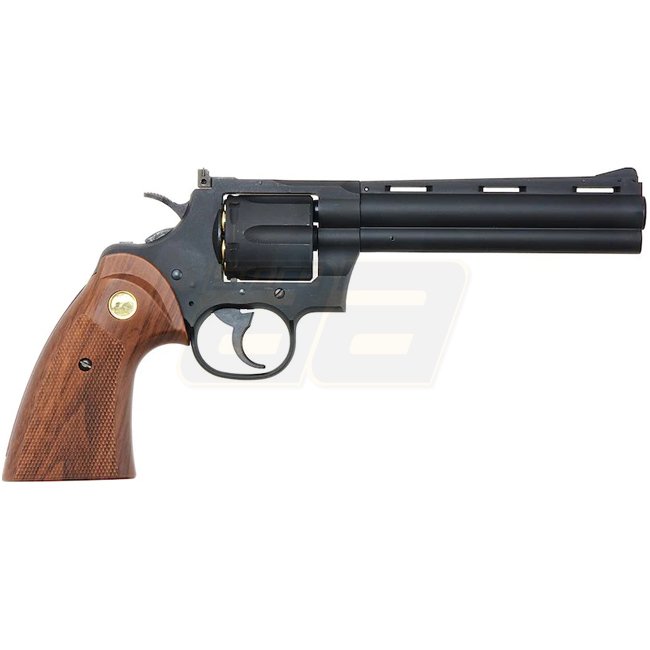 Realistic gas revolver with a 6-inch barrel, semi-auto shooting mode, and includes 6 shells plus a speed loader.