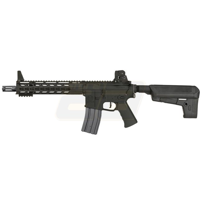 Krytac Trident Mk2 CRB AEG IT - Black: Version for Italian market, 330 FPS, 1 joule, orange flashhider. Metal/polymer build, 300rd mag, 723-805mm length, 2912g weight, MOSFET gearbox, High Torque motor, semi/full auto, adjustable hop-up, 41.16-43.90m rang