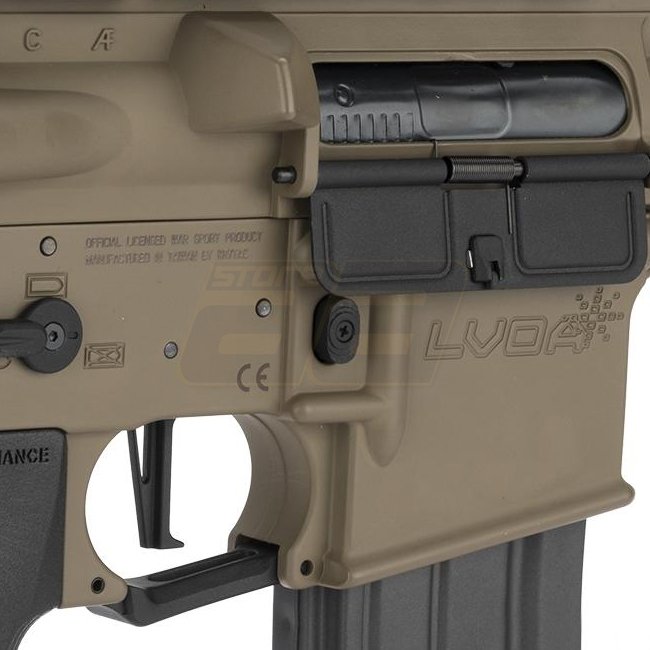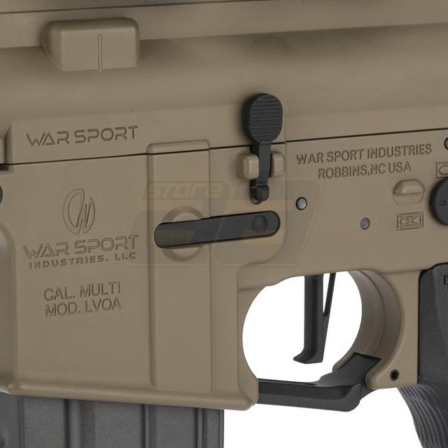 Krytac War Sport LVOA-S Full Power AEG - Dark Earth is a high-quality airsoft gun with a metal/polymer build, 755-840mm length, and a powerful 380-400 FPS muzzle velocity. It features Version 2 gearbox with 8mm bearings, quick spring change system, MOSFET