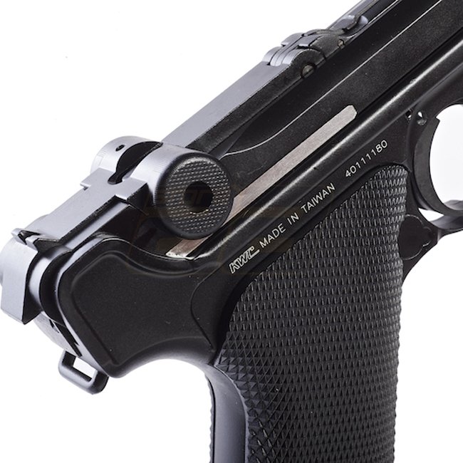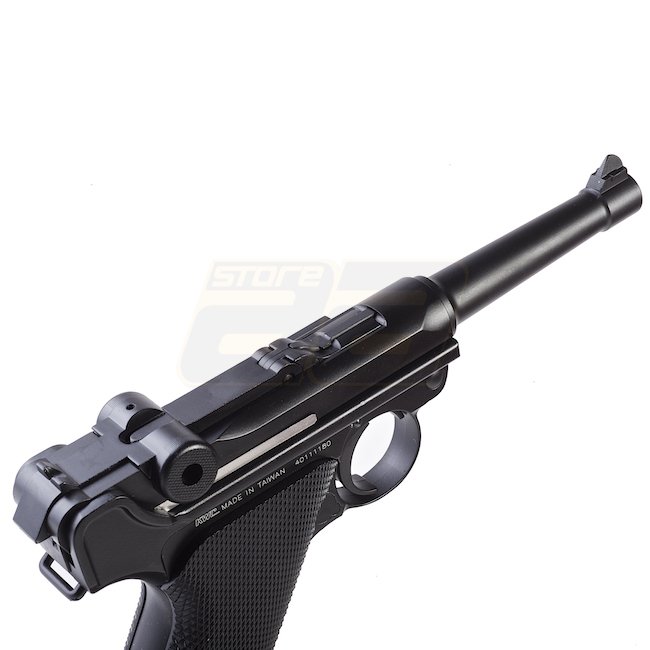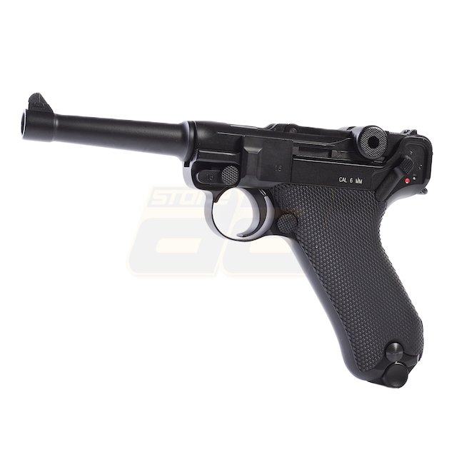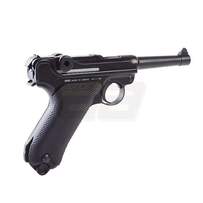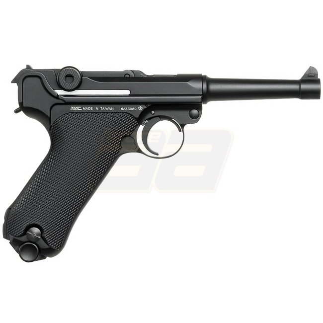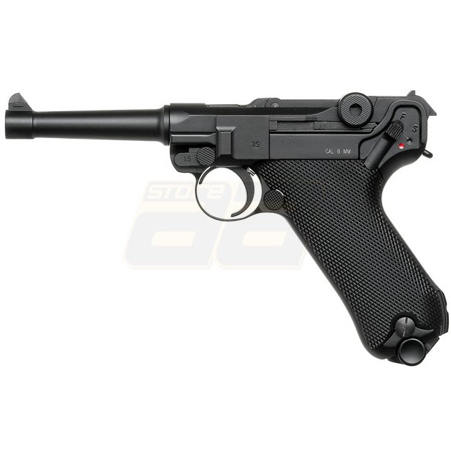 KWC P08 Full Metal Co2 Blow Back Pistol 4 Inch Version - Metal and plastic construction, 15 round magazine, 220mm length, 834g weight, 100mm inner barrel, 330-350 FPS velocity, Semi Auto shooting, 45.27-48.02m range, Fixed Hop Up, includes gun and magazin