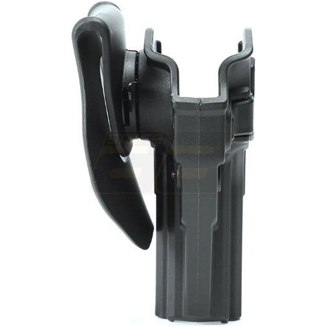 Laylax Battle Style CQC Holster for Marui DE .50AE GBB, designed for right hand use in Black color. Ideal for quick-draw situations with a secure fit.