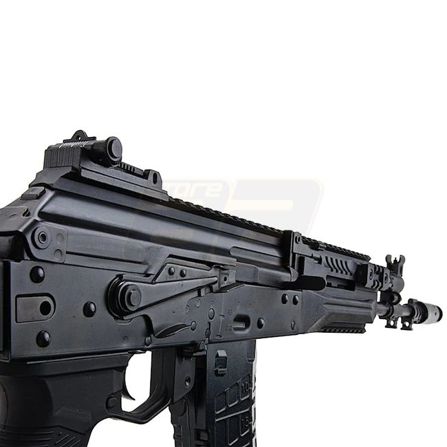 This LCT AK19 Rifle AEG in Black features a metal body with a polymer stock and pistol grip. Comes with a 130-round magazine, shooting at 400-420 FPS with semi-auto & full-auto modes. Adjustable hop-up, 435mm inner barrel, and a custom motor. Package incl