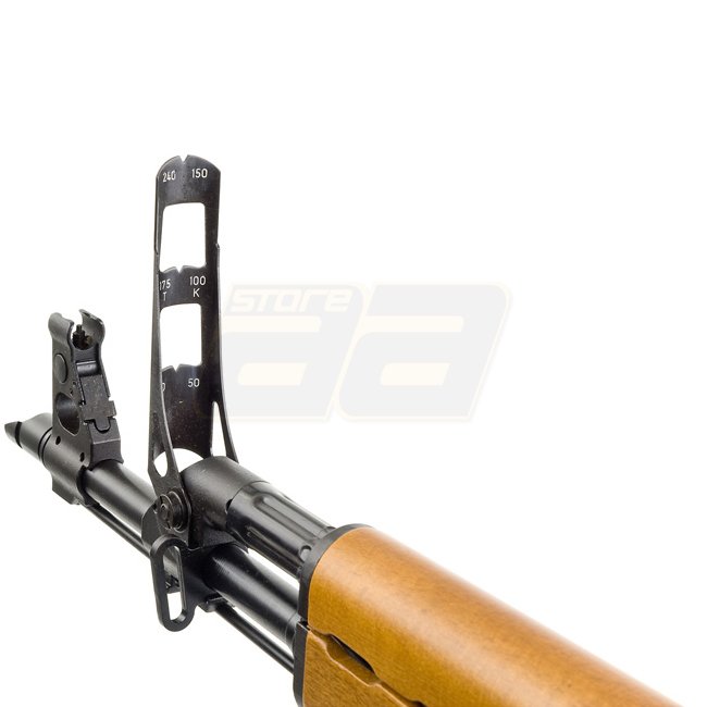 LCT M70AB2 AEG is a durable airsoft rifle with a steel gearbox and handguard, pistol grip, and plastic materials. It features a 600-round magazine capacity, a length of 650/910mm, and weighs 3450g. The rifle has a muzzle velocity of 290-310 FPS, a shootin