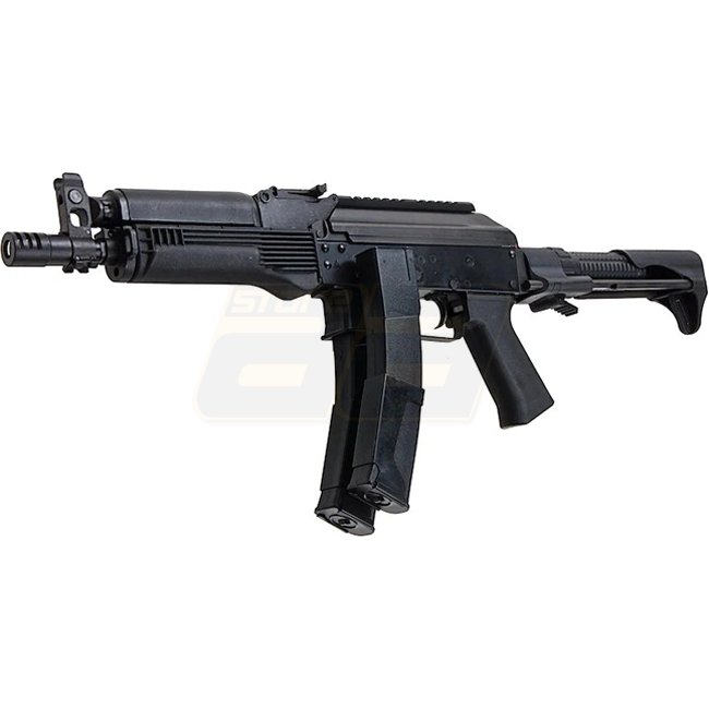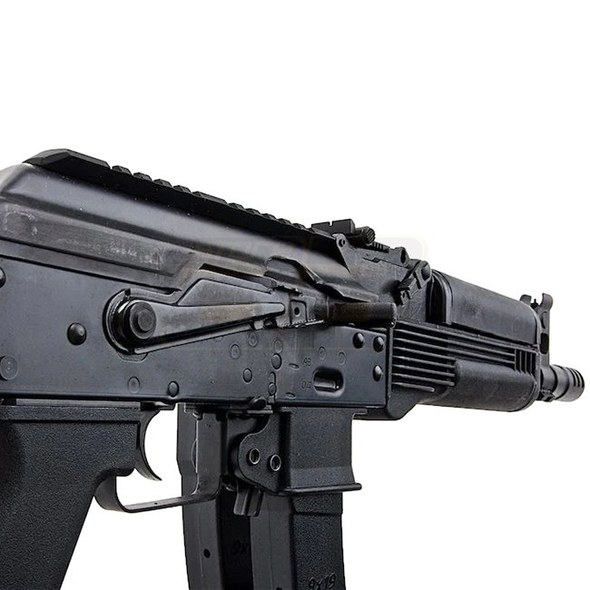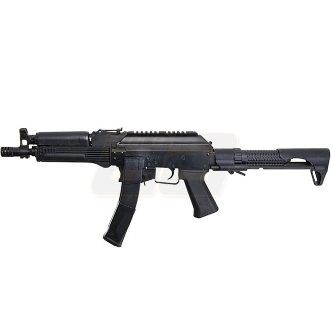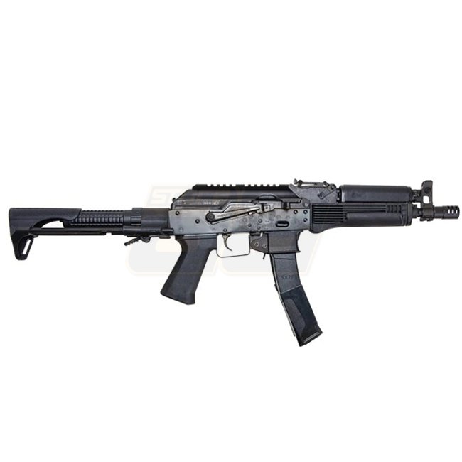LCT TK PDW 9mm AEG - Black: customizable metal gearbox, 50-round magazine capacity, 640-720mm length, 3382g weight, adjustable hop-up, fires at 360-380 FPS. Semi & Full Auto shooting modes.