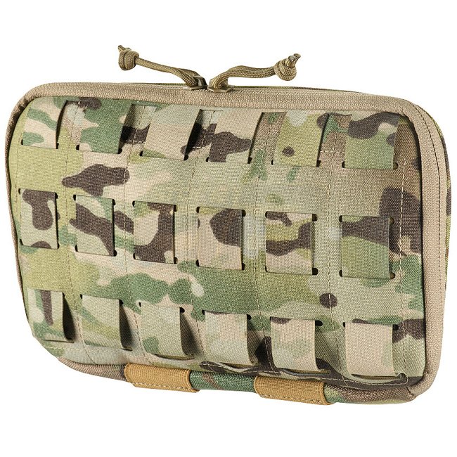 The pouch has one large compartment. The inner walls of the pouch are lined with velor, which allows you to attach modular inserts or place a tablet. A Velcro panel is sewn on to the front, intended for attaching equipment and patches. At the bottom of the pouch, the designers added an elastic band for a chemical light. The Admin Large Elite attaches to you gear via the MOLLE interface.