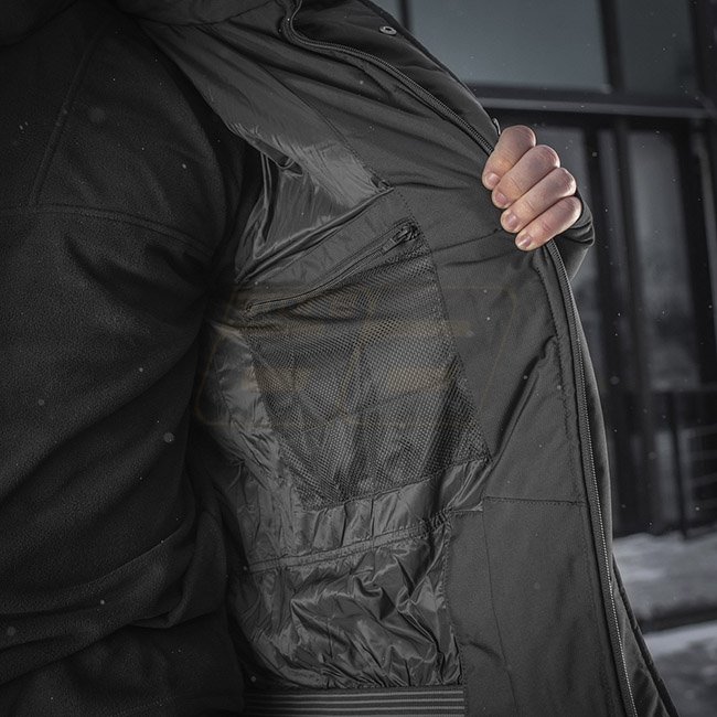 This model was developed with consideration for the achievements of leading manufacturers, as well as the experience and wishes of employees of the Ministry of Internal Affairs and the Armed Forces of Ukraine. Alpha Extreme is aimed at moderate physical activity, such as long patrols, which often takes up most of the time on duty. An adjustable collar with a padded hood, fleece cuffs, an elasticated inner waistband, wind / waterproof zippers help keeping you warm and comfortable in winter conditions. Due to the modern materials and a progressive design the jacket doesn't hinder movement and also allows storage of equipment in conveniently located pockets. There are two vents under the sleeves that provide access to equipment carried under the jacket, which also can be used for air circulation.