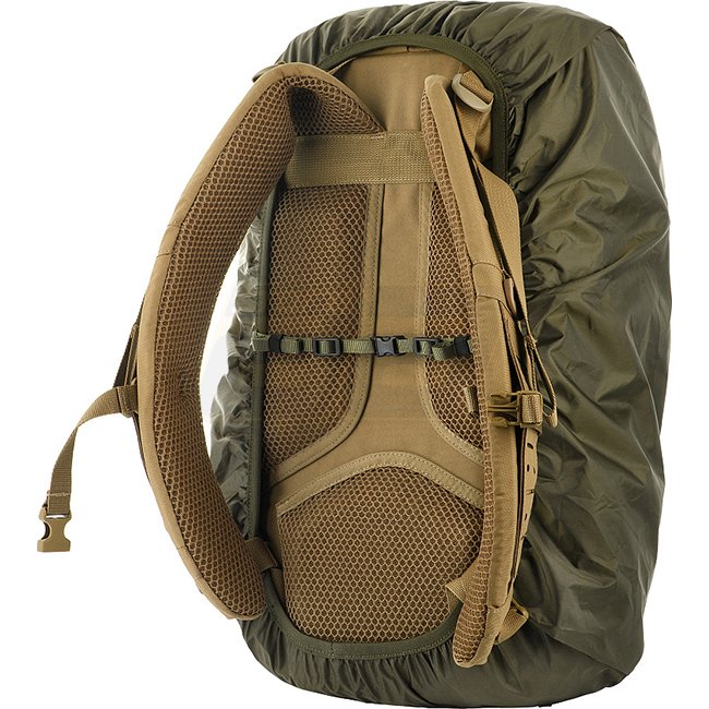 The M-Tac Backpack Cover in Olive - Small comes with a water-repellent coating for rain and snow protection. Ideal for backpacks up to 20 liters. Material: Nylon with a PU coating.