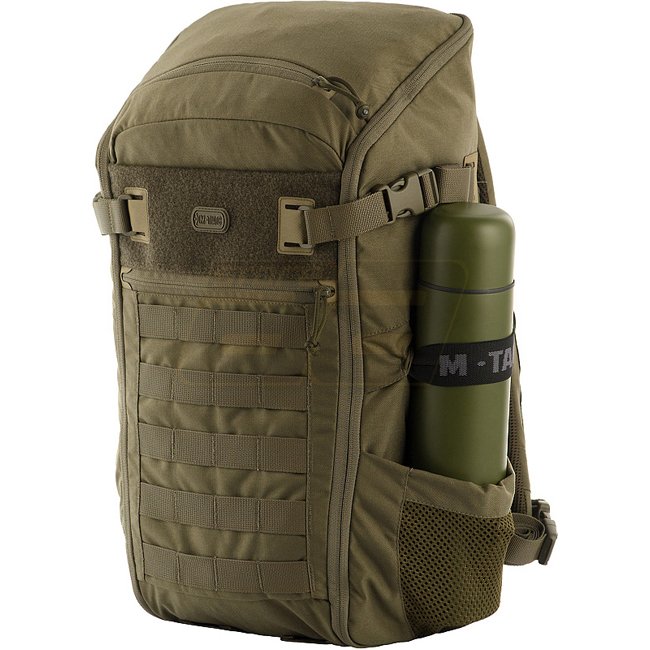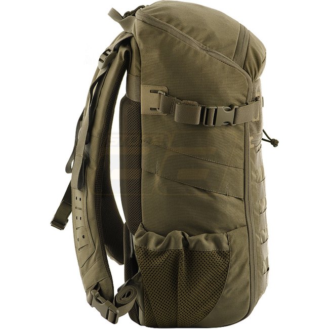 M-Tac Backpack Elite Small Gen.II - Ranger Green: Elite Small Gen.II backpack with suitcase-like opening, mesh pockets with elastic cord ties, MOLLE panels on front. Sturdy construction with plastic base, aluminum rails, carbon rod insert. Cordura 500 mat