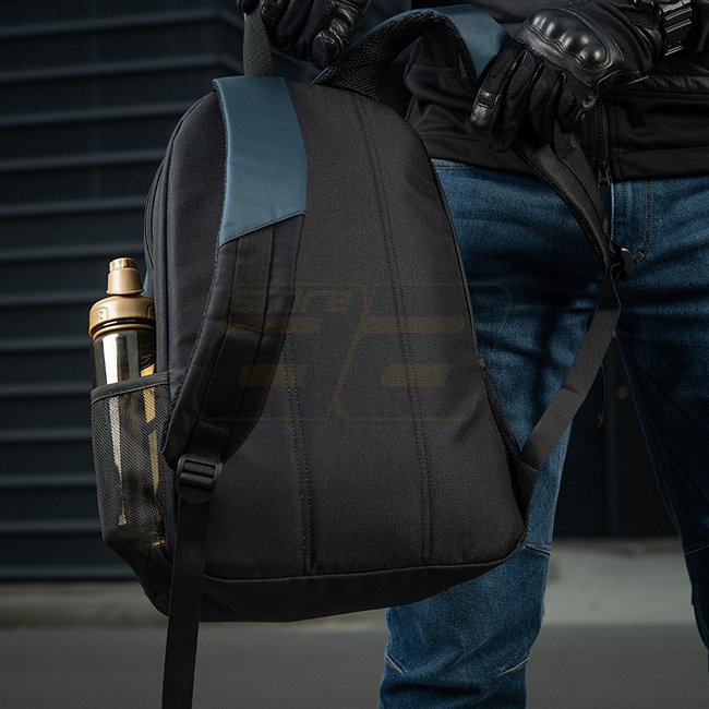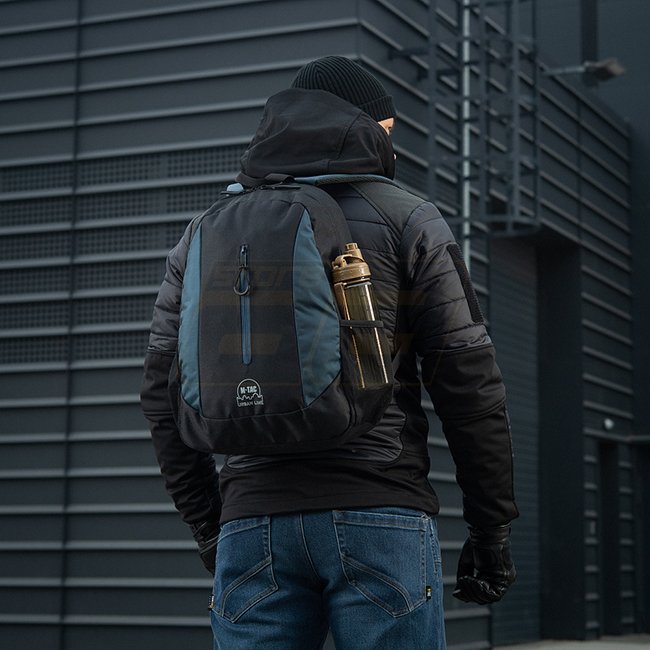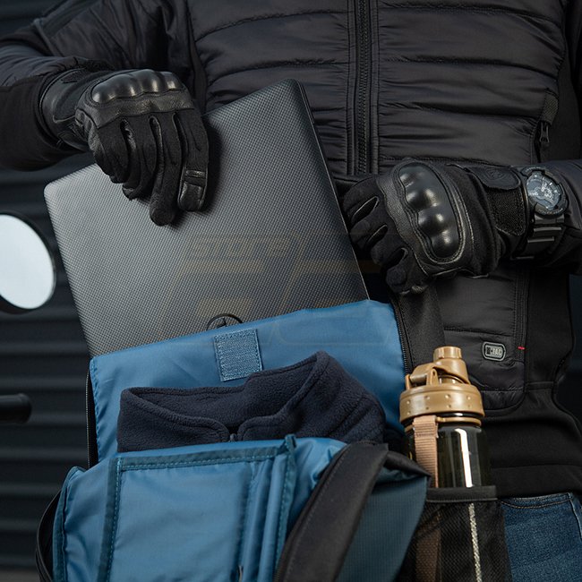 There are also dedicated pockets on the side for water bottles. Both regular plastic 1-liter bottles and Nalgene flasks will fit perfectly there.