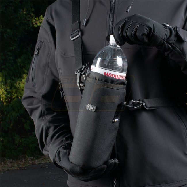 The M-Tac Bottle Cover & Strap in black is a practical accessory made of high-quality 500D Cordura material, perfect for modern drinking bottles or standard 1.5 liter water bottles. Featuring a heat-insulating material for a thermal effect, MOLLE interfac