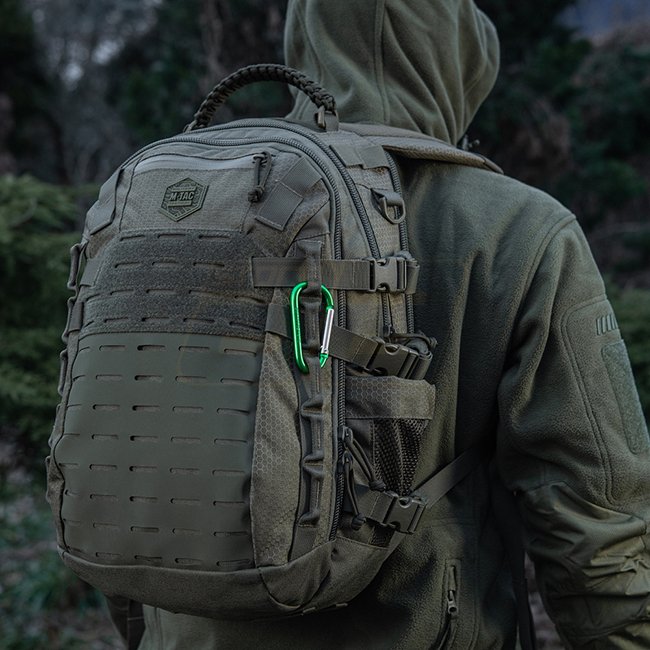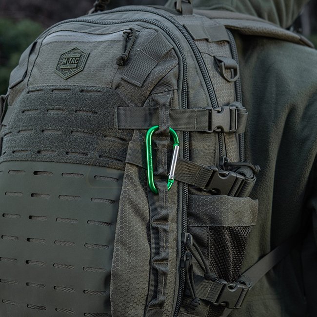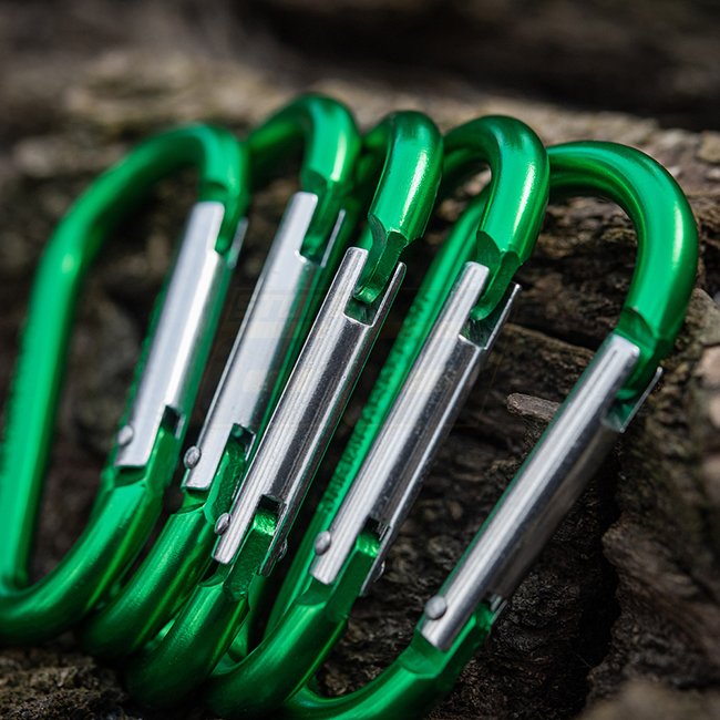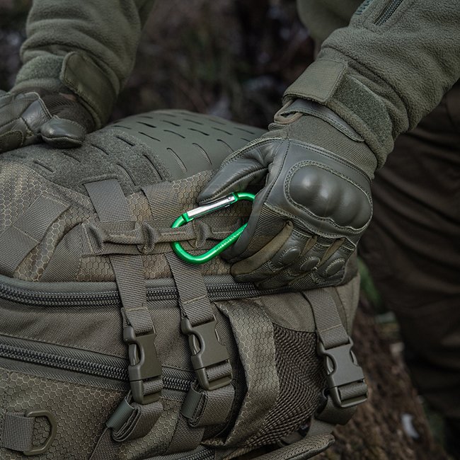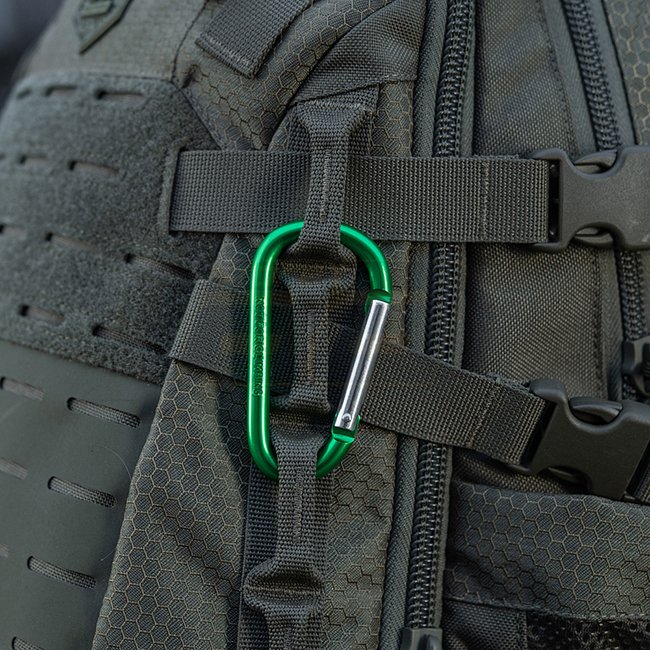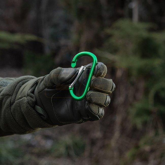 M-Tac Carabiner 8 cm - Olive, made of aluminum, not suitable for climbing and rescue efforts.