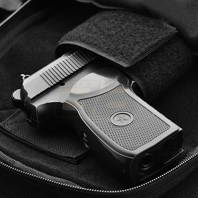 The Carry Sling Bag Elite is designed for concealed carrying of weapons. Inside the bag there is a universal Velcro holster which holds most pistol models. With the help of special straps, you can quickly open the bag and remove the weapon from it. The bag's belt is conveniently adjustable to fit the body. For convenience, it has five additional compartments for storing personal belongings that will allow you to unload the pockets of trousers, shirts, jackets or shorts.