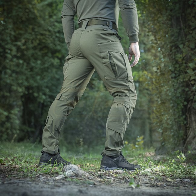 M-Tac Conquistador Tactical Flex Pants Gen.I - Army Olive - 30/36 are durable, comfortable, and versatile outdoor trousers. Made of PolyCotton Ripstop Flex with water and stain-resistant Teflon impregnation. Features elastic inserts, multiple pockets with
