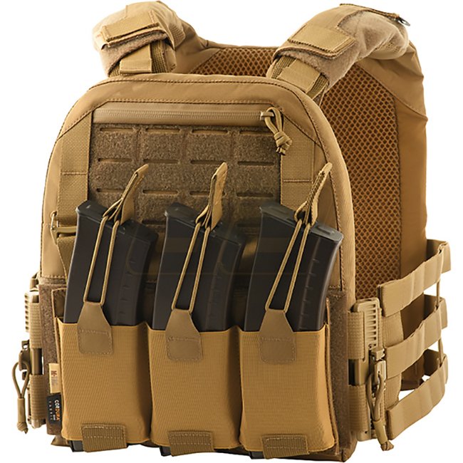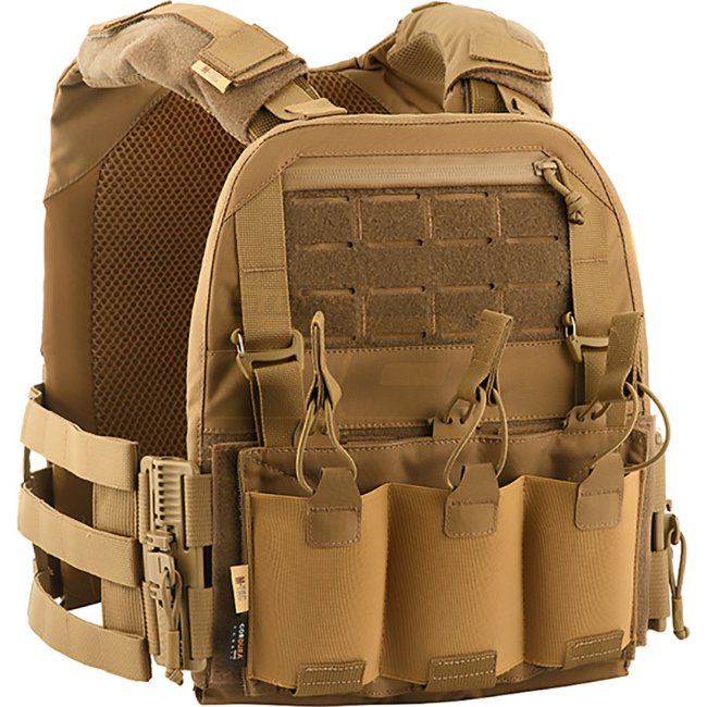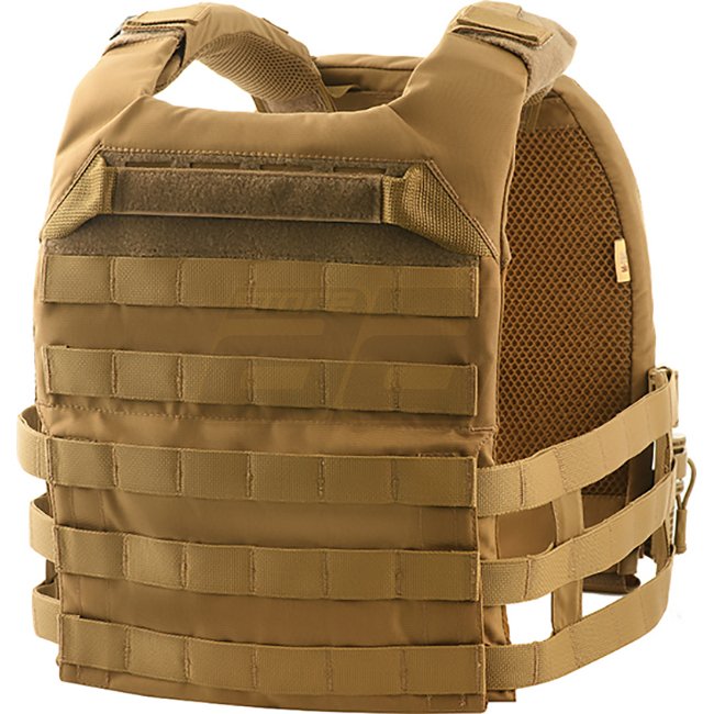 M-Tac Cuirass Plate Carrier QRS - Coyote: Evolutionary plate carrier with quick release system, modular pouches, and Cordura materials. Compatible with SAPI & ESAPI size Medium.