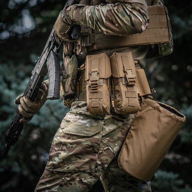 The main part of the pouch is made of high-quality Сordura 500D, a super-strong fabric, resistant to abrasion and high loads. The flap cover and MOLLE interface are made using laser cut technology. The elasticated nylon inner side walls allow easy removal of magazines from the pouch.