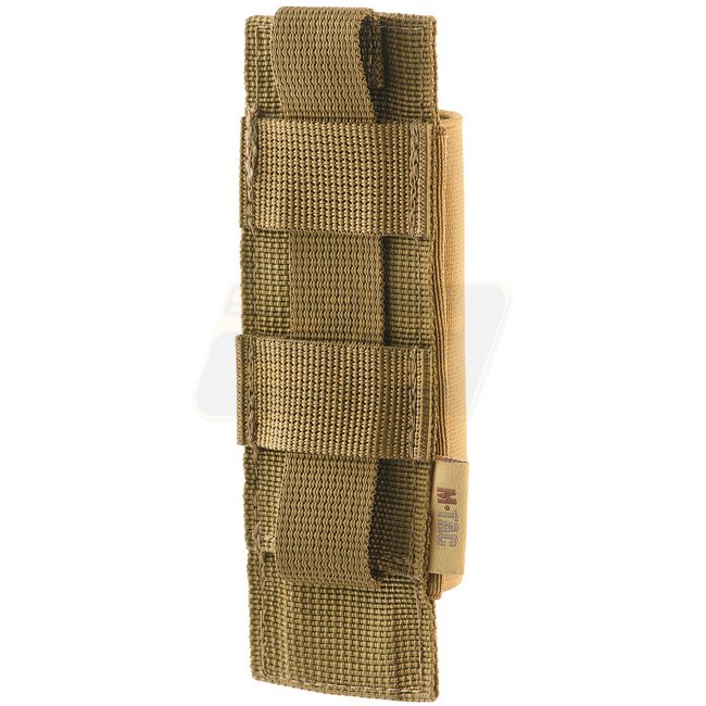 The M-Tac Elastic Tourniquet Holder MOLLE in Coyote color is designed for CAT tourniquets or similar gear, with a modular attachment system for MOLLE surfaces, vests, and waist belts. Made of durable Cordura 500D.