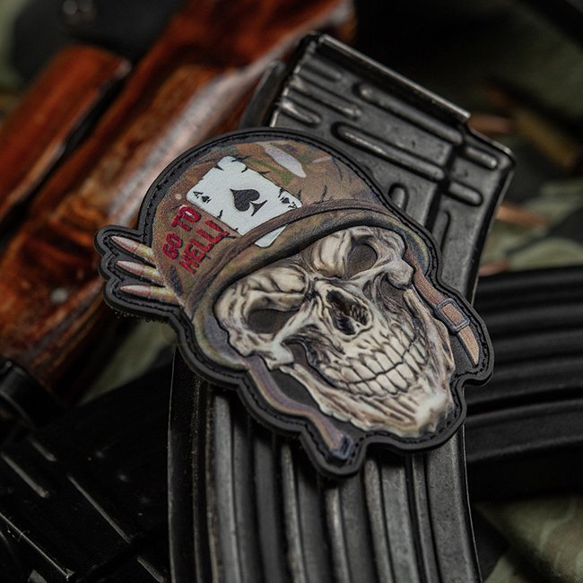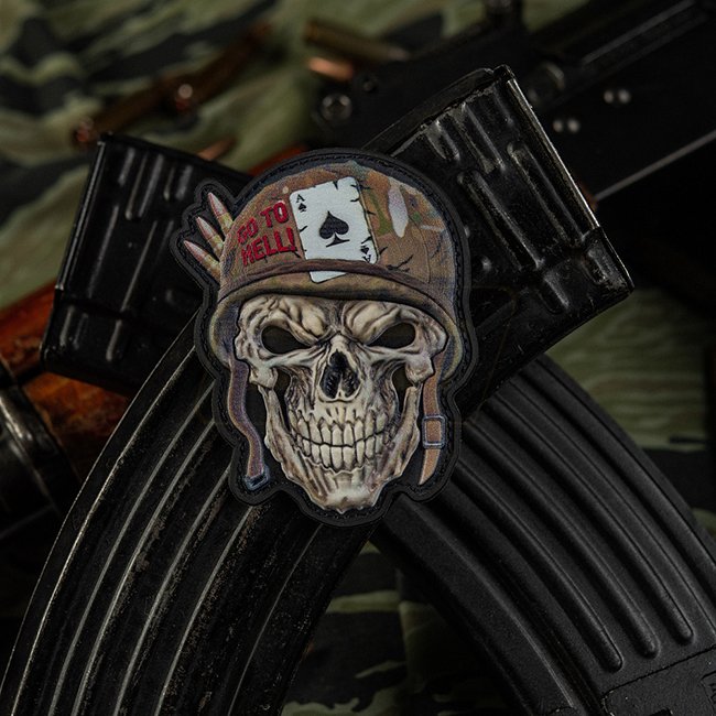 M-Tac Helmet Skull Print Patch - Coyote. Rubber front with hook surface. Dimensions: 85 x 65 mm.