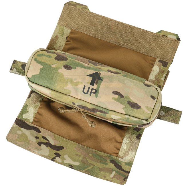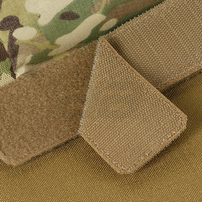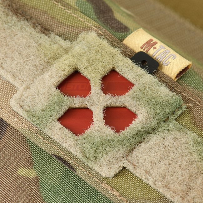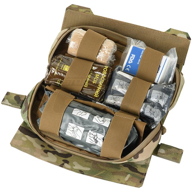 The medical pouch is installed in the pocket of the rear part of the plate carrier. An additional removable Velcro layer on the flap of the pouch will help to integrate it into any plate carrier where the lower part of the back pocket closes with Velcro, no matter if the hook or loop part is needed.