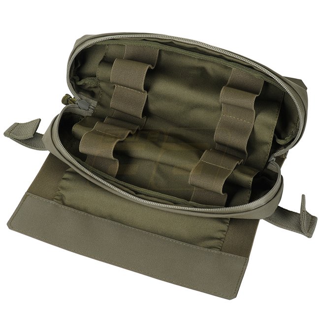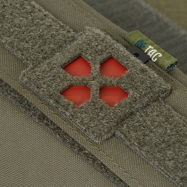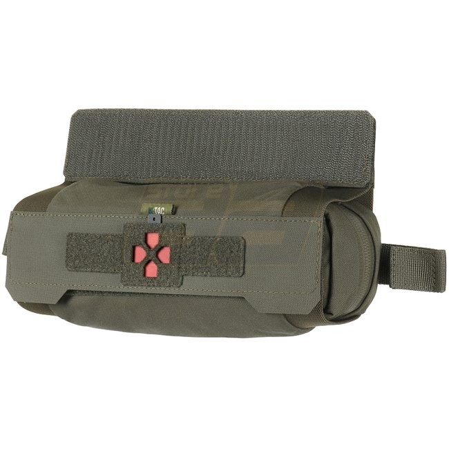 This roll consists of two parts: an outer cover and the internal IFAK (Individual First Aid Kit) pouch. The outer cover is adjustable in volume and provides open two-way access. By pulling the strap it can be quickly removed. The pouch is connected to the cover by means of Velcro to prevent accidental loss. Inside the pouch an organizer made of rubber bands for attaching medical supplies (not included) can be found. The front flap of the pouch is equipped with an identifier in two colors.