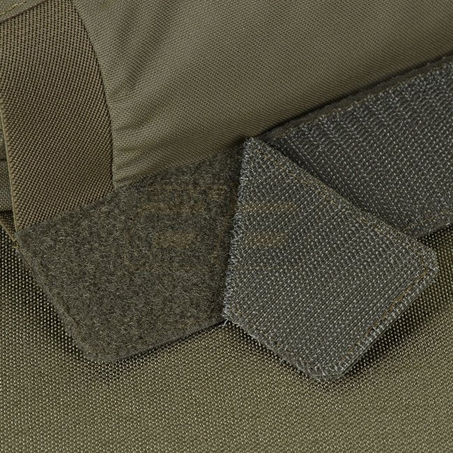The medical pouch is installed in the pocket of the rear part of the plate carrier. An additional removable Velcro layer on the flap of the pouch will help to integrate it into any plate carrier where the lower part of the back pocket closes with Velcro, no matter if the hook or loop part is needed.