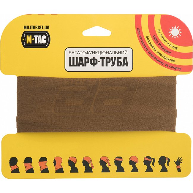 This multifunctional bandana, also known as Multi-Wrap or Recon Wrap, has a shape of a tube and is made of thin knitted fabric (100% polyester), which can easily be turn into an underhelmet cap, a balaclava, bandana, a one-layer or two-layer hat, dust mask, scarf or even a headband. It is easy to stretch and dries quickly. When folded, it takes up almost no space.