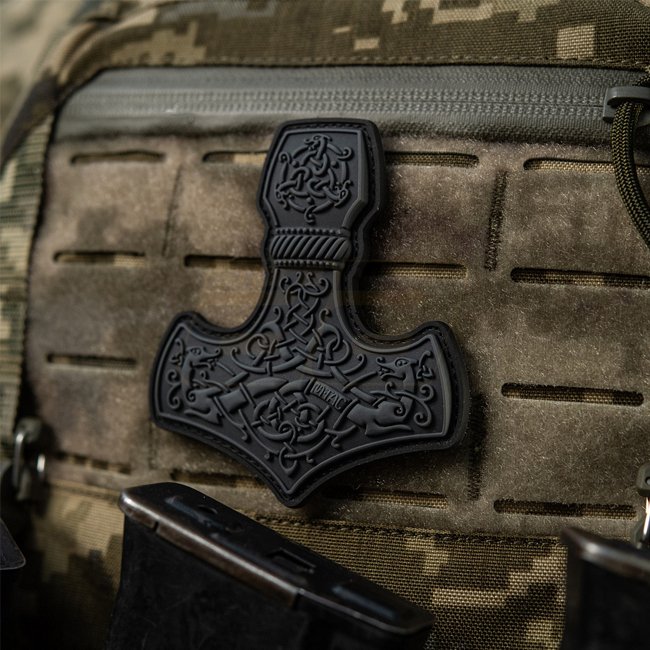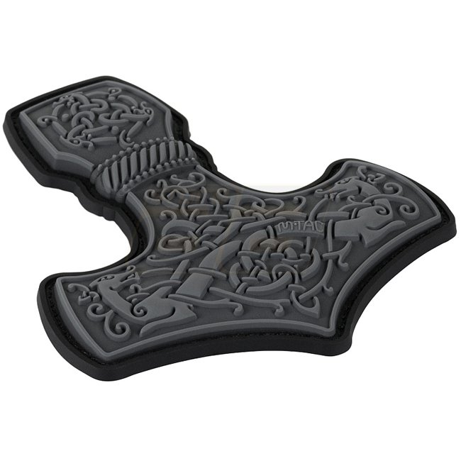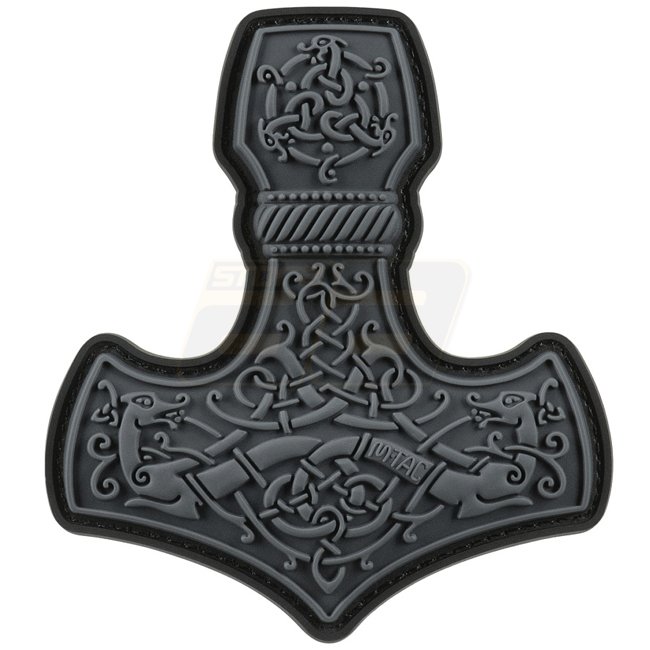 M-Tac Mjolnir Rubber Patch Large - Grey. PVC front with hook surface back. Dimensions: 90 x 80 mm.