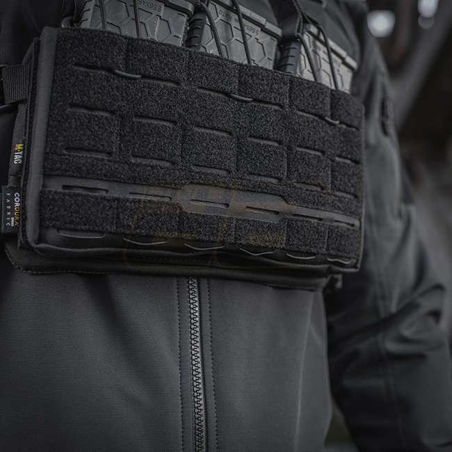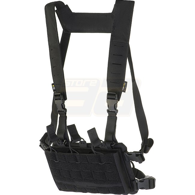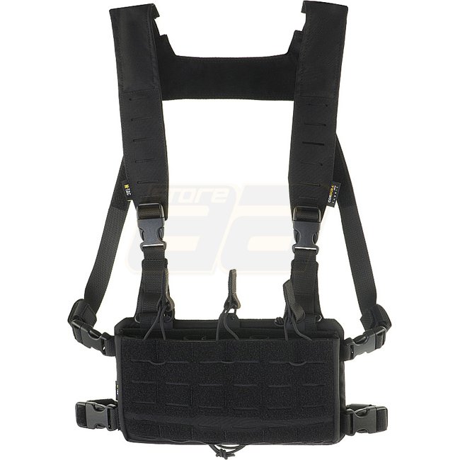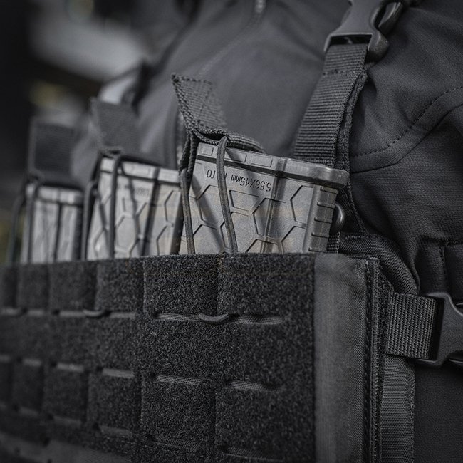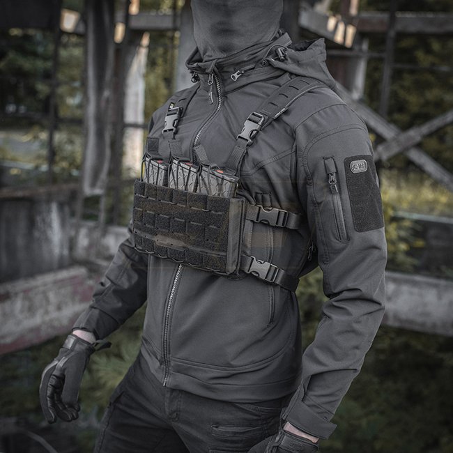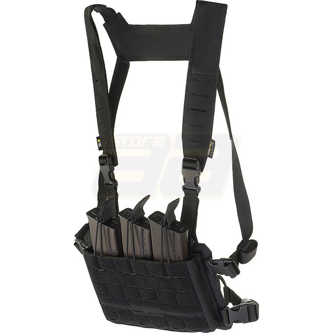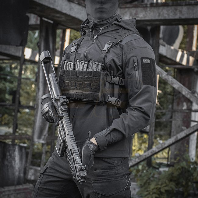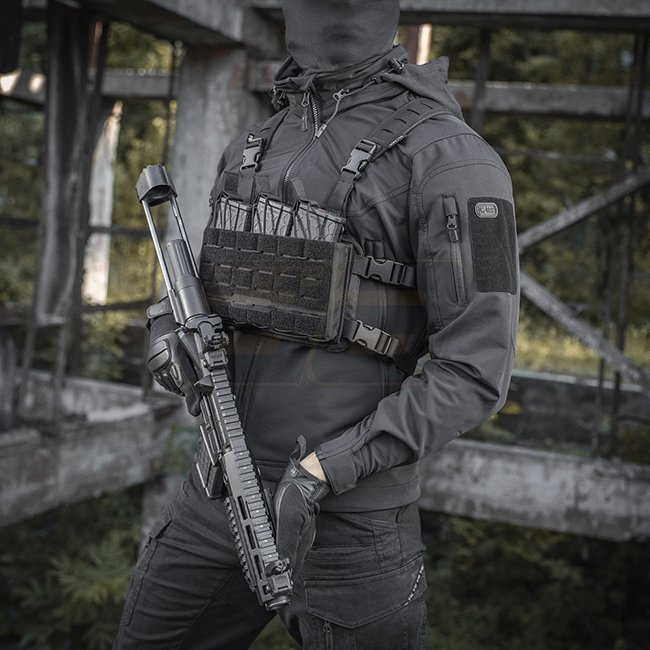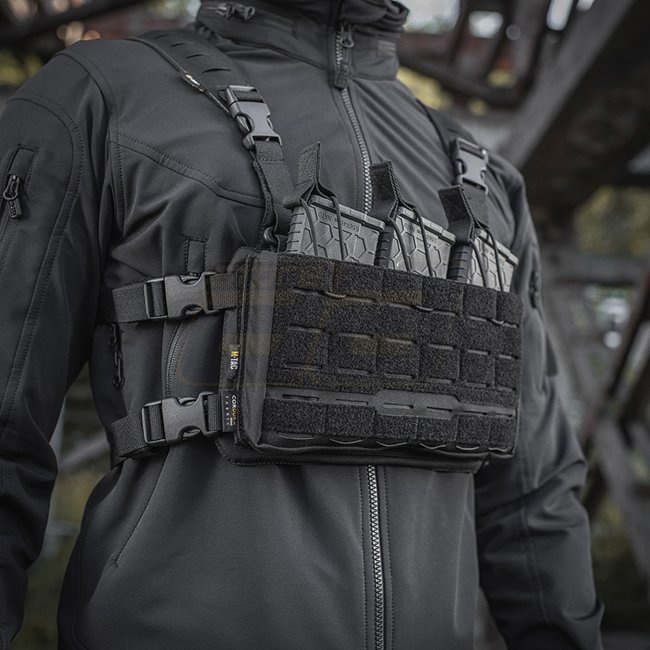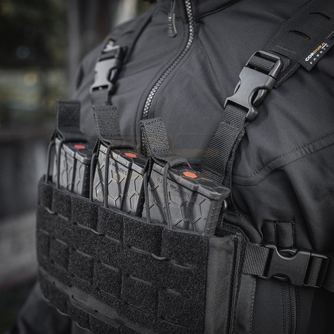 The M-Tac Modular Chest Rig in Black is a versatile and comfortable tactical chest rig made of high quality Cordura 500D material. Designed for three magazines, securely attached with Woojin hooks and Velcro. Features a removable front panel with MOLLE sy